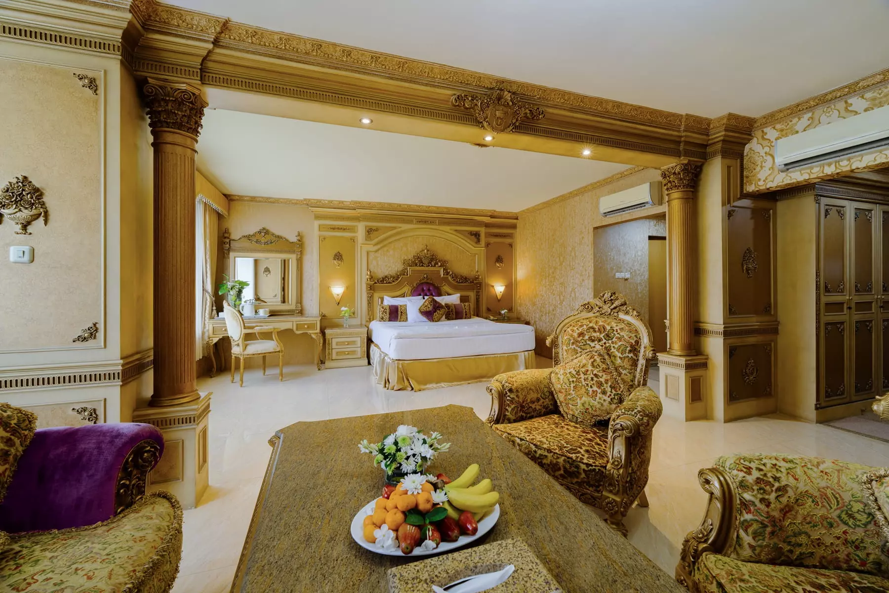 Kamar President Suite sangat ideal untuk tamu bisnis yang mencari kenyamanan lebih. Dengan ruang tamu elegan dan nuansa interior klasik Victoria, setiap sudutnya memancarkan kemewahan khas Eropa.